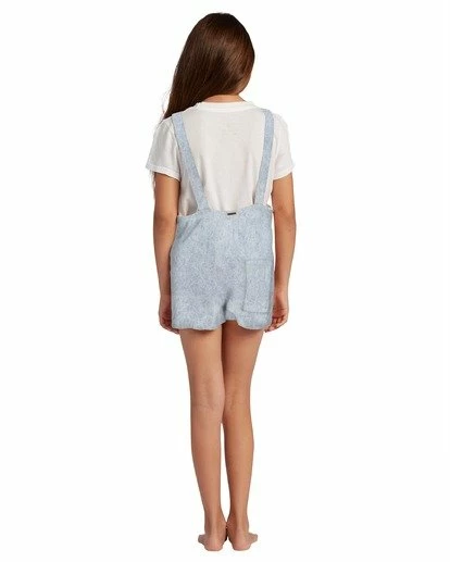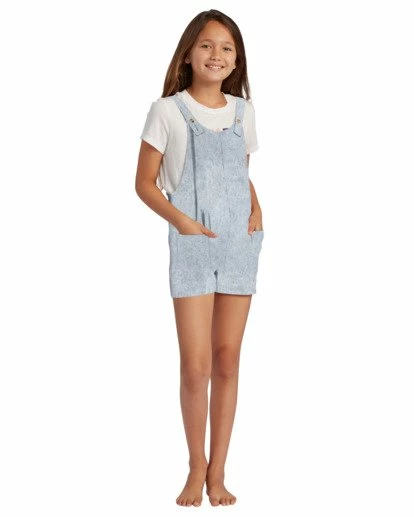 Overalls with a surf-tumbled print, the Billabong Hello Surf Romper looks just as wave-washed when worn over a bikini as when tossed over a crisp tee. An easy, relaxed fit girl’s romper features overall styling with wide, adjustable straps that button at the front bib.