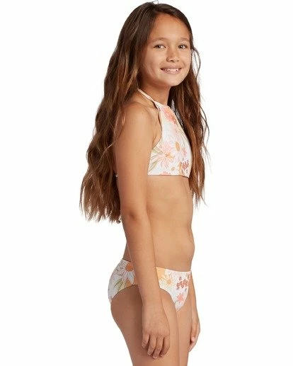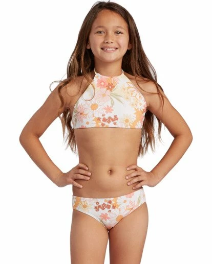 The Billabong Little Bit Of Sunshine High Neck Bikini delivers a beachy bouquet of retro-inspired blooms. Adding sunshine to grey days, the girl’s bikini continues the throwback vibe with a halter bikini top that reverses top reveal a sunny yellow floral print, letting you mix and match prints with the classic bikini bottom. The girl’s floral bikini is made from eco-conscious recycled stretch swim fabric.