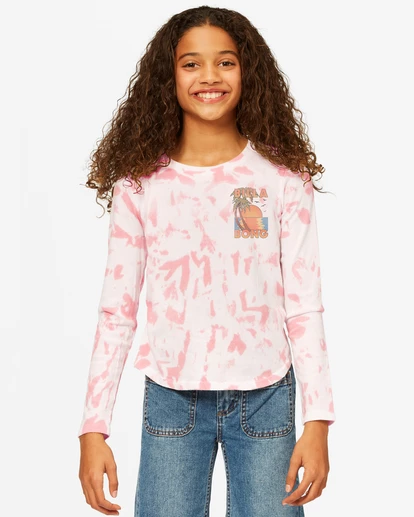 70s dreamin’ in the Girls’ Back In Time Long Sleeve T-Shirt. Serving up strong retro vibes, this long sleeve tee for girls features a tie-dye wash done with vintage jersey fabric. The fit is relaxed, and multicolored screen printing brings throwback graphics into the here and now.