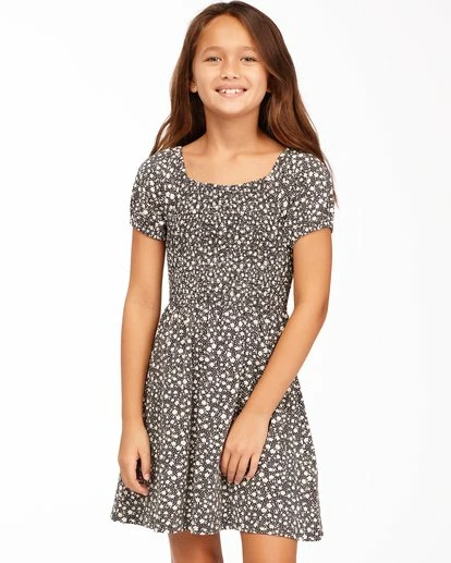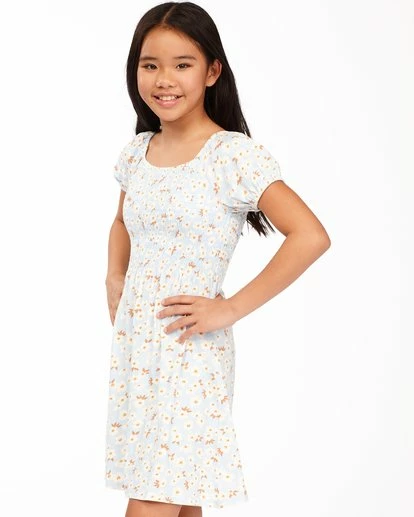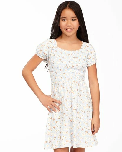 Living for salty hair and a sun-kissed glow, the Girls’ Beach Love Knit Dress looks great lounging on the sand or on the move. Offering a classic babydoll fit with a smocked bodice and puff sleeves, this girls’ short dress is made with light and flowy cotton jersey fabric and finished with a playful, floral print.