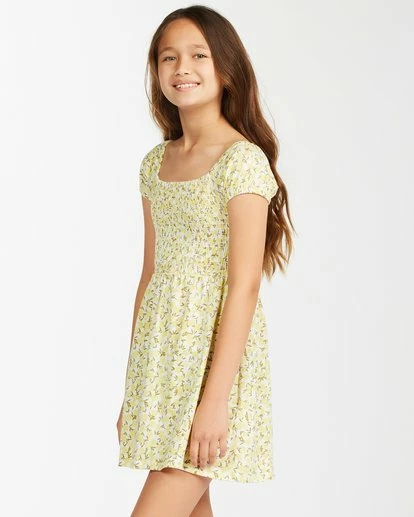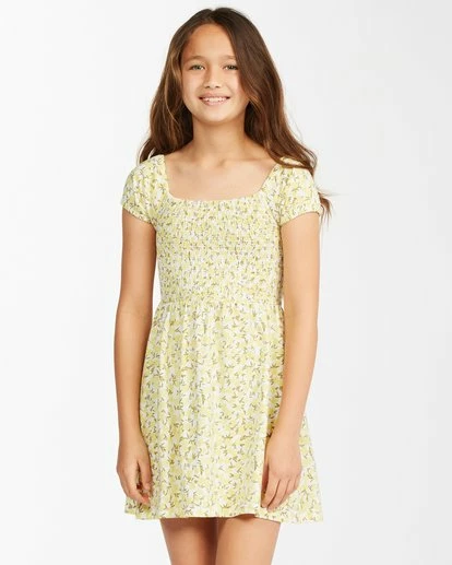 What’s the secret to happiness? Sun, sand, fun waves, and the Girls’ Beach Love knit mini dress. This girls’ dress from our Sunny Side Up Collection features a feminine floral print on soft cotton jersey fabric. Fitted through the chest, this dress contrasts with an easy skirt that keeps it lightweight and flowy. The smocked fabric delivers a stretchy and comfortable fit through the top. And did we mention puff sleeves? Lovestruck, indeed.