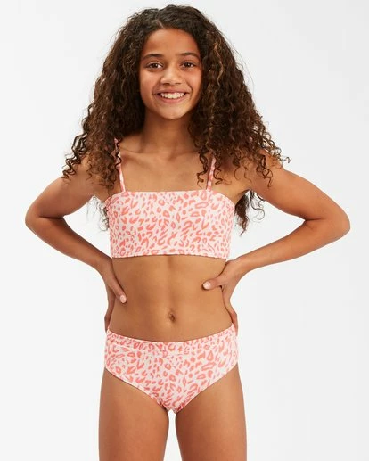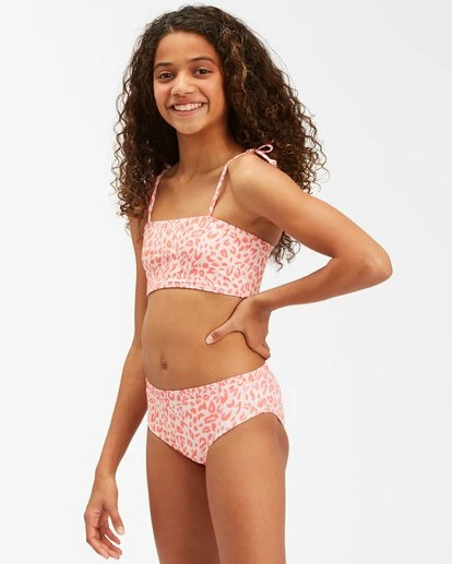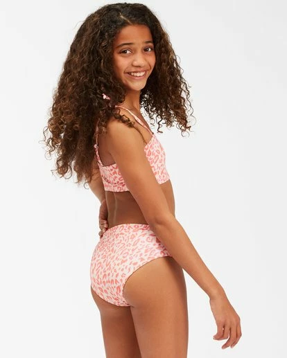 Feeling fierce and free, the Girls’ Chase The Wild Strappy Tank bikini set shows off your style with feline finesse. This bikini set for girls includes a cropped tank top with shoulder ties and a high-waisted bottom. The recycled stretch fabric is soft and comfortable for all-day adventures, and the bold animal print lets you wear the feeling of the wild wherever you roam.