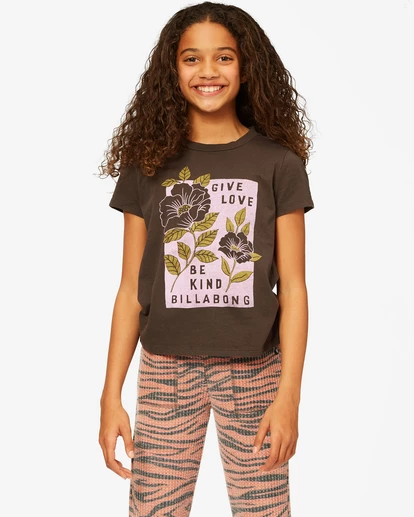 Bring on the good vibes with the Girls’ Give Love T-Shirt. Crafted with lightweight cotton fabric, this boyfriend tee for girls offers a regular fit with a soft and comfortable feel you won’t want to take off. A piece-dyed color wash gives this graphic tee a love-worn finish.