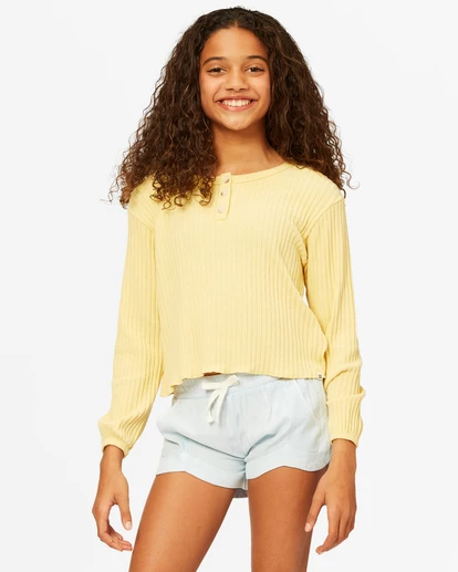 Shining from the inside out in the Girls’ Im Set Top. Packed with good vibes and easy style, this soft knit long-sleeved top for girls features a henley neckline and a relaxed fit throughout. Pair this laid-back staple with the Im Set Pant for the ultimate lounge-worthy combination.