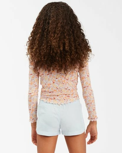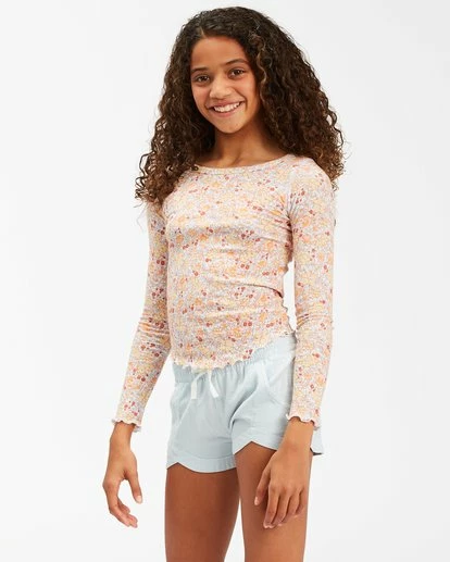 Bloom your brightest self in the Girls’ Picking Flowers long sleeve knit top. This girls’ top from our Under The Palms Collection is made with a premium pointelle ribbed knit fabric and designed with a slim fit, so it looks and feels great both on its own or as a base layer for colder days. Supremely soft and ultra-comfortable, this floral long-sleeve is styled with a colorful print and baby merrow ruffles at the hem.