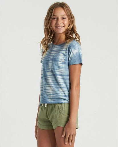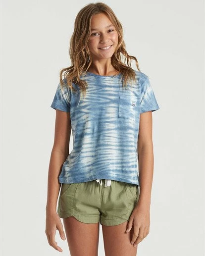 A new tee for the old soul. Sending out retro design with a true tie-dye or striped print, the girls pocket t-shirt features short sleeves and logo embroidery at the left chest.