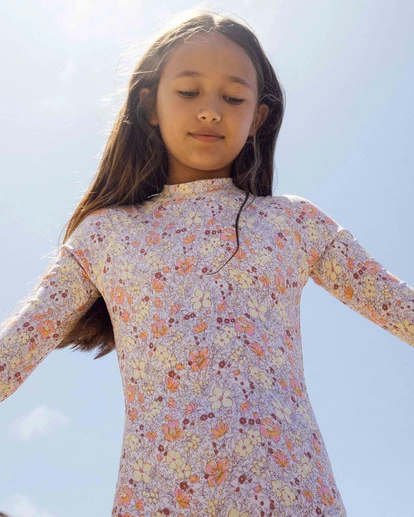Tap into your flow with the Girls’ Sweet Dreamer Boy Short long sleeve swimsuit. Whether you’re sharing waves with friends or pushing your limits, this one-piece swimsuit for girls combines comfort and style with a playful print on soft and stretchy recycled swim fabric. The classic fit, complete with full bum coverage and a zip-back closure, helps you move through the water like a pro— without restricting mobility. Plus, enhanced sun protection means your ride only stops when the sol goes down.