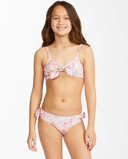This suit is what junior beach babe dreams are made of. Whether you’re playing in the surf and hanging out on the sand, the Girls’ Sweet Dreamer Trilet delivers perfect style for sunsoaked days. This girls’ bikini set features a trilet top with a medium coverage bottom cut from soft and stretchy recycled swim fabric. It’s super cute and comfortable, but the magic of this suit is found in its details. Hanky ties play up its fun and feminine side, while the bright floral print keeps a smile on your face.