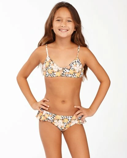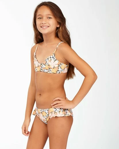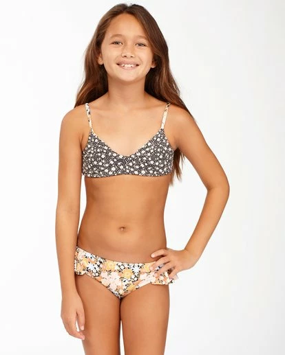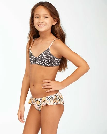 Sea-salted and sun-soaked, it doesn’t get much sweeter than the Girls’ Sweet Dreams Reversible Trilet Bikini Set. It’s got a V-neckline, medium bum coverage, and dreamy bottom ruffles. Oh, and did we mention it’s reversible? Brighten your day with these two floral prints you can mix and match to suit your style.