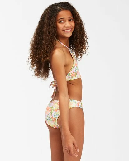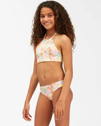 Wildflowers made for the wild child— Feel the wind at your back and the sun on your face with the Girls’ Windsong High-Neck bikini set. Giving you two standout looks in one bikini, this girls’ swimsuit includes a halter top and a full-coverage bottom. The recycled swim fabric is soft and comfortable for all-day adventures. Mix and match these two bold prints to create a look that blooms brighter than all the rest!